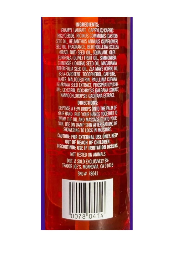 Indulge in ultimate skin nourishment with this 2-pack of Trader Joe’s Brazil Nut Body Oil. Infused with skin-loving ingredients like squalane and guarana extract, this fast-absorbing oil leaves your skin soft, radiant, and delicately scented with a warm salted caramel and pistachio aroma.