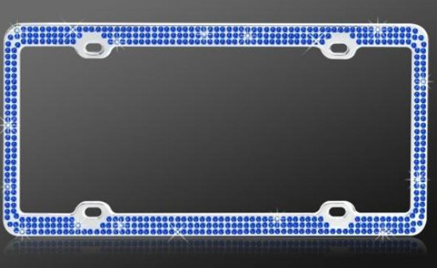 Triple Row Blue Crystal Metal License Plate Frame – Hand Inlaid Shine